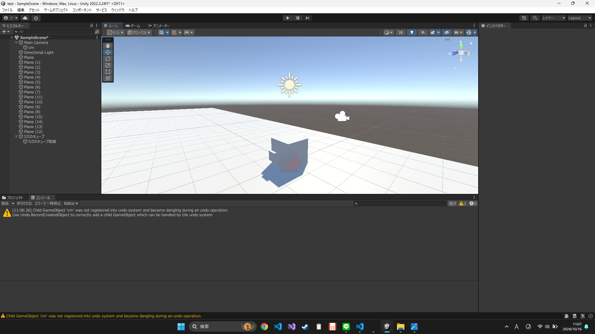 私は「ただのブロック」というキャラもどきをシーンに配置しました