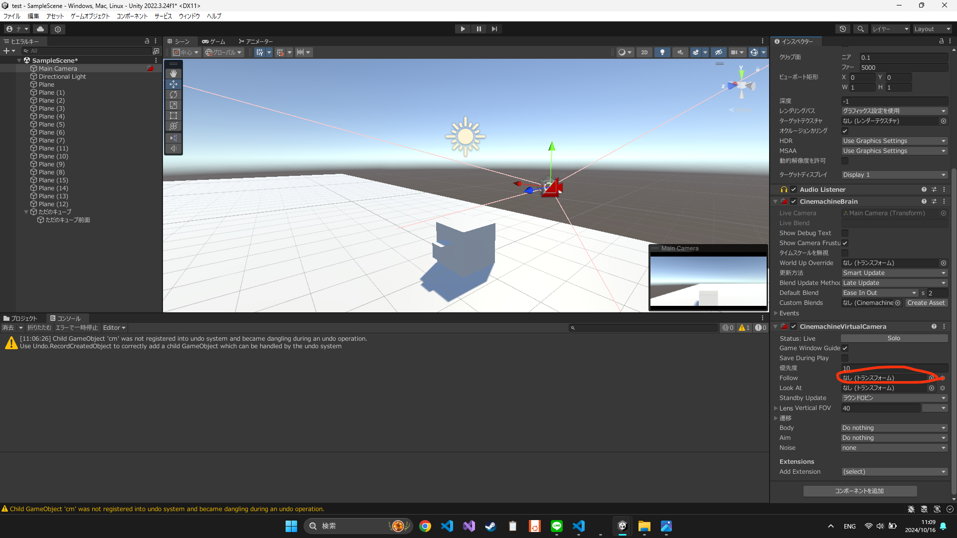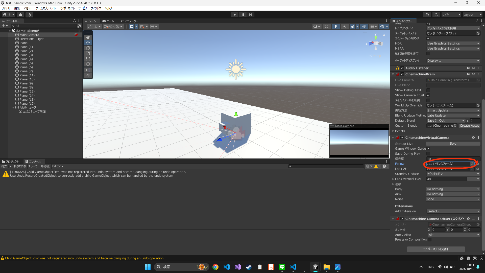 ChinemachineVirtualCameraとは、カメラ操作に関する設定を行うものです