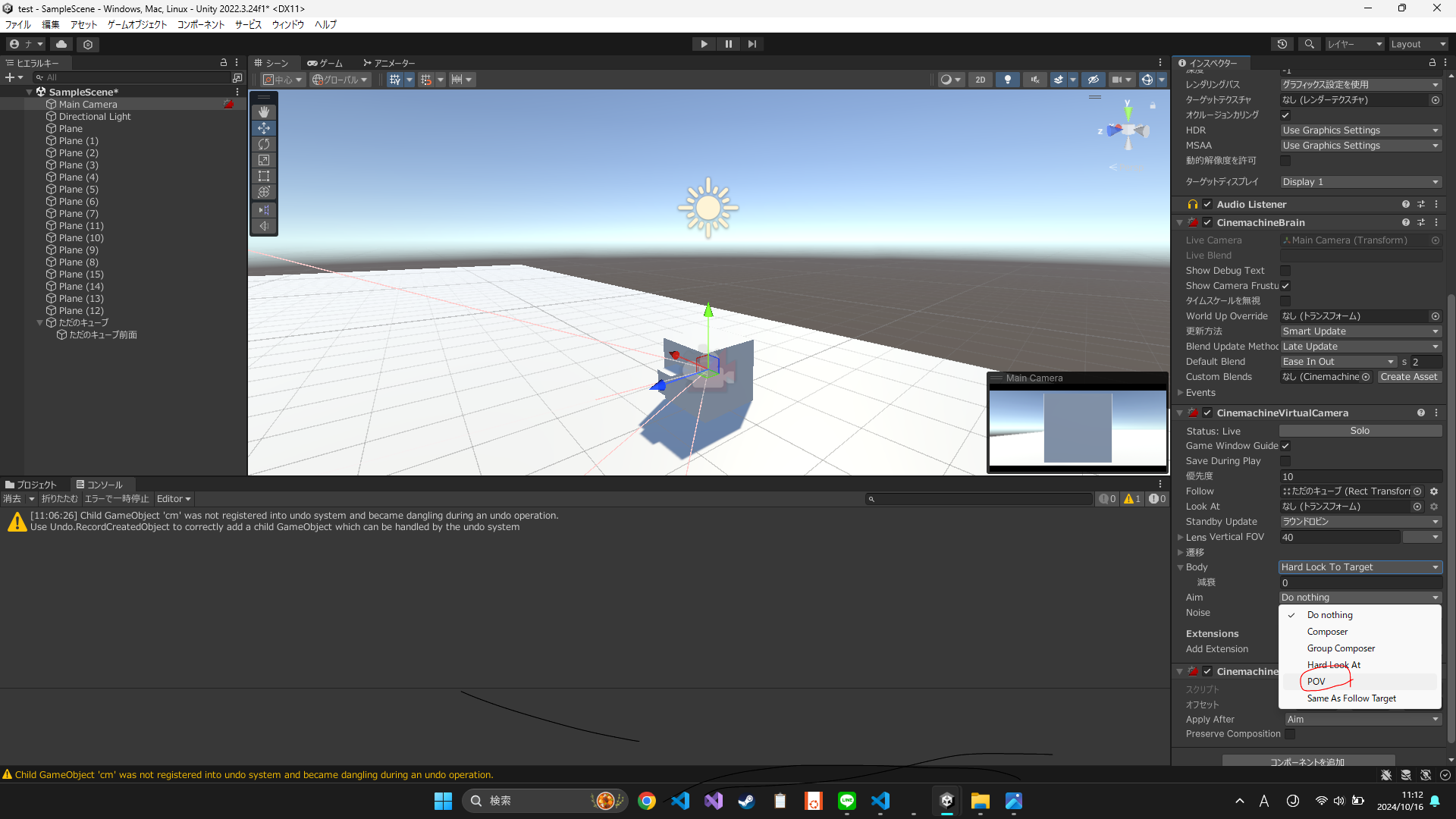 なのでChinemachineBrainは、とりあえずメインカメラにくっつけておくものだと覚えましょう